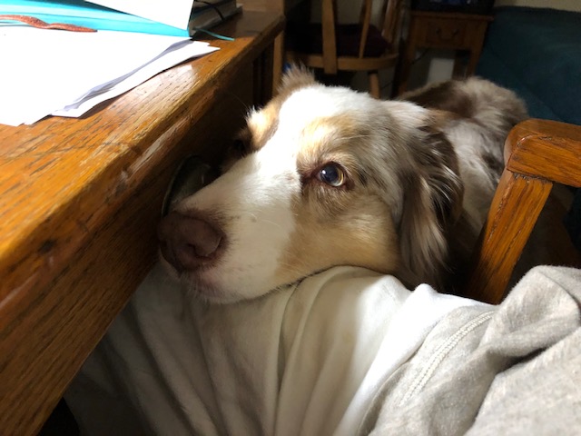 I had hopes of sharing Lucy with you. Lucy, the perfect Therapy Dog. It didn’t work out: She failed Puppy Kindergarten racing throughout the training center with another pup chasing her. She failed Obedience Dog Training TWICE, not because she did not know and couldn’t execute every command, but because she is an Australian Shepherd who decided to leap on the middle-aged lady administering the tests (both times, same lady) and slather her with dog kisses. And my thinking fourth time would be the charm, we suffered through Therapy Dog training. She was perfect for six weeks. Then came the final exam. We don’t want to talk about it. The instructor retired after this session.