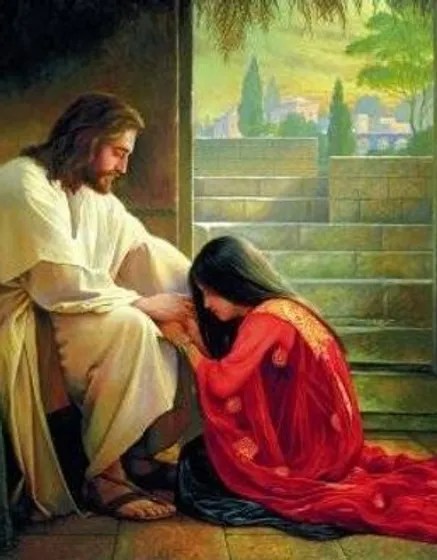 bathing his feet with her tears,