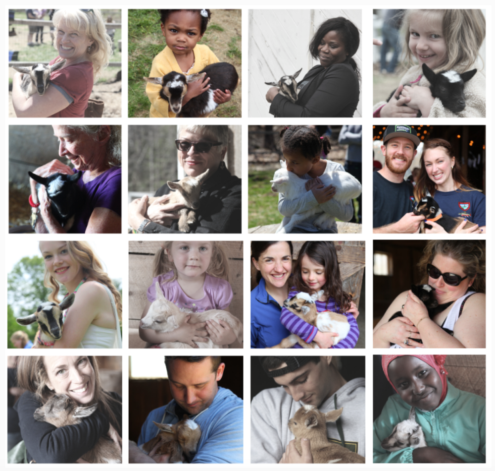 baby goats in their arms,